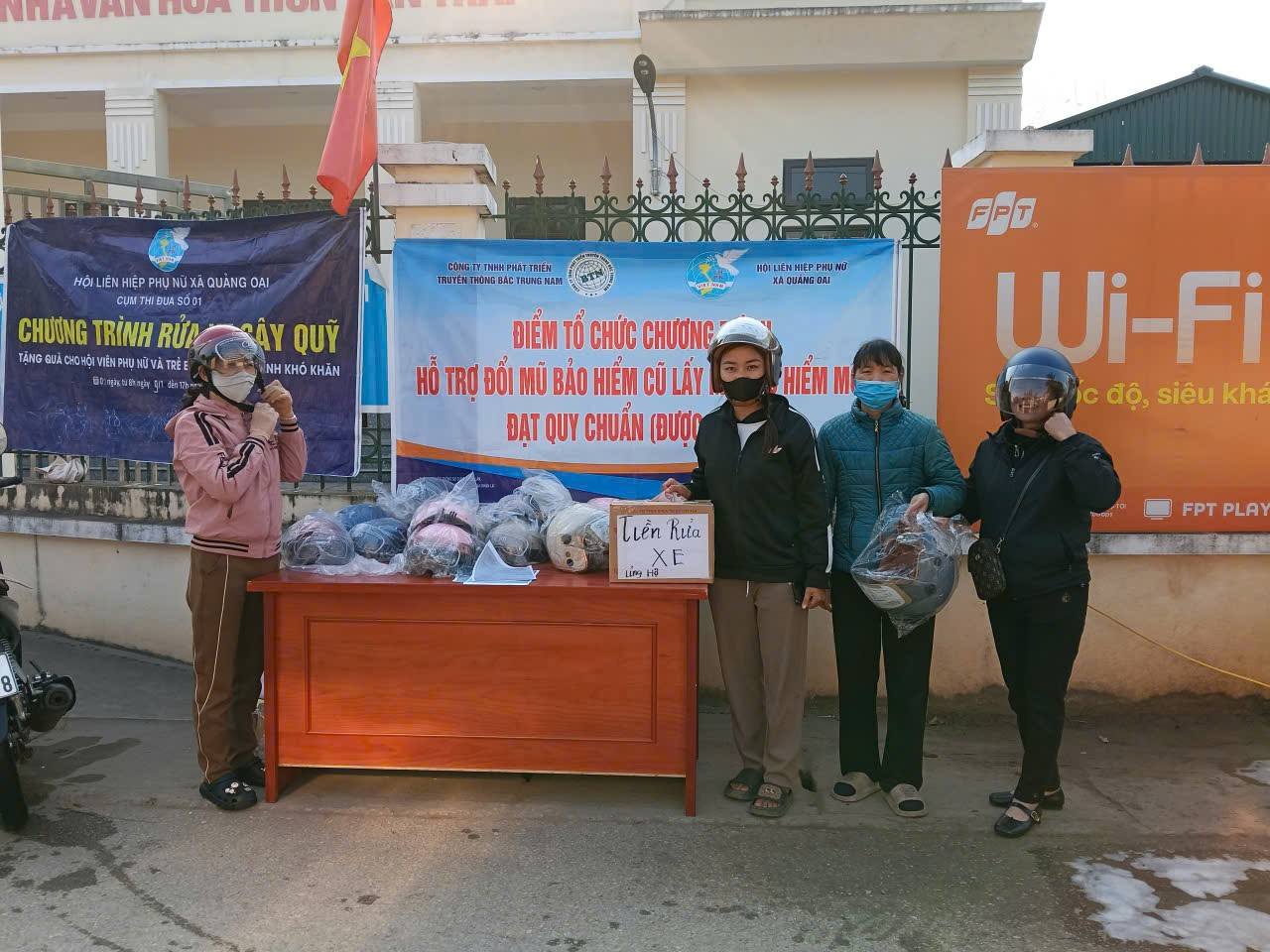 Chi hội Phụ nữ các thôn Vân Trai, Chu Quyến, Cao Nhang tổ chức hoạt động rửa xe gây quỹ kết hợp đổi mũ bảo hiểm