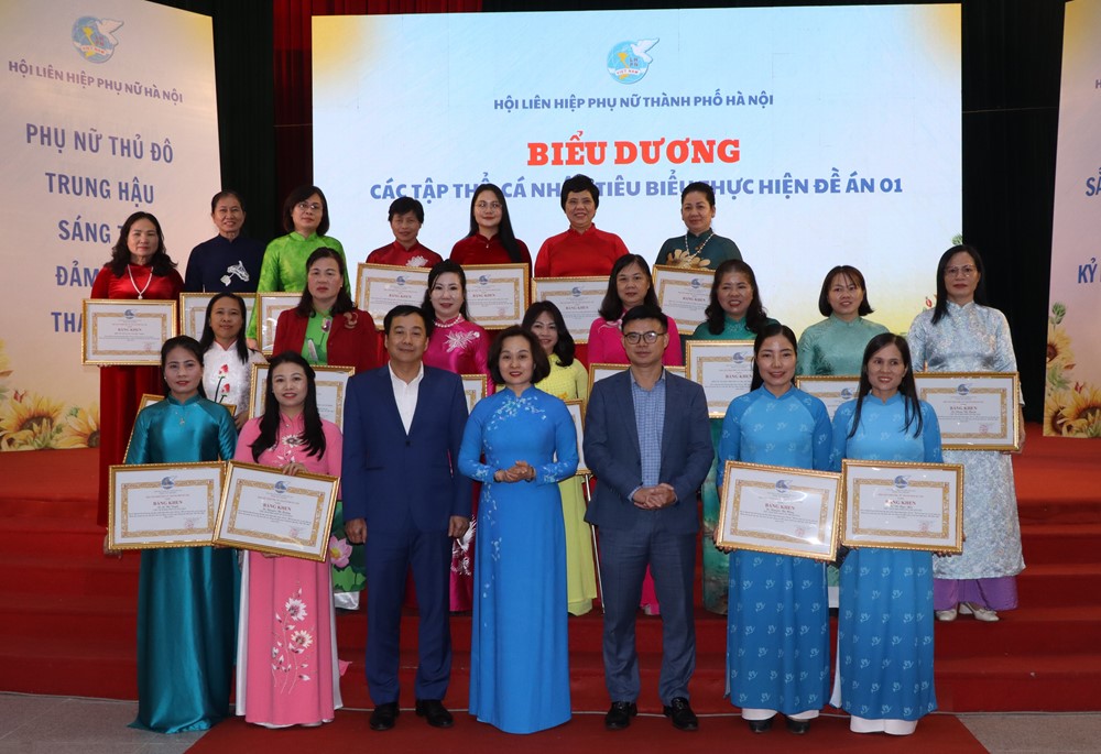 Để ghi nhận nỗ lực, Hội nghị đã biểu dương và đề nghị khen thưởng các tập thể và cá nhân xuất sắc: 10 cá nhân được đề nghị UBND Thành phố tặng Bằng khen vì đã đóng góp tích cực cho đề án xây dựng nông thôn mới, đô thị văn minh giai đoạn 2022–2025; đồng thời 10 HTX và 10 cá nhân thuộc Đề án 01 nhận Bằng khen từ Hội LHPN Hà Nội. Những đơn vị được vinh danh là hình mẫu trong quản lý kinh tế tập thể, đổi mới công nghệ, nâng cao chất lượng sản phẩm, tạo sinh kế bền vững cho phụ nữ địa phương.